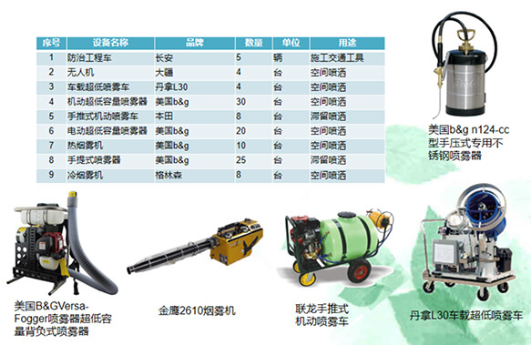 具有行業先進的設備,美國B&GVersa-Fogger噴霧器超低容量背負式噴霧器30臺、電動超低容量噴霧器20臺、熱煙霧機10臺、手提式噴霧器25臺......